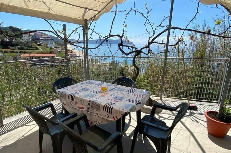 Appartamento trilocale situato al piano terra, 5-6 posti letto(Massimo 4 adulti e 2 bambini) composto da cucina attrezzata, 2 camere da letto, bagno e gazebo attrezzato ad uso esclusivo.